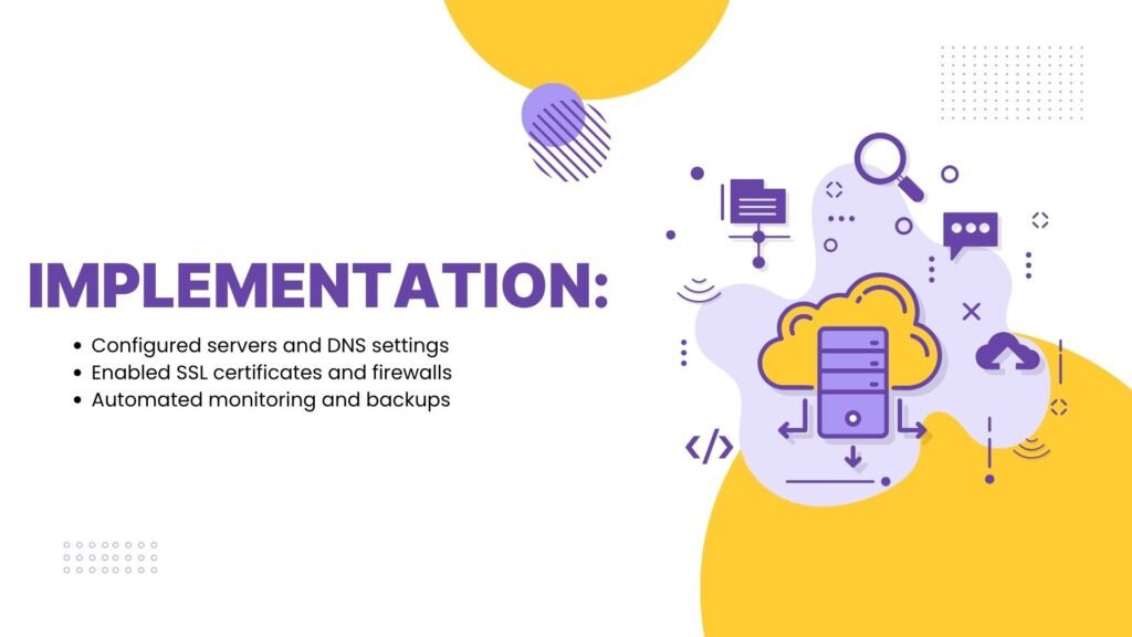Through effective monitoring, automated backups, and optimized server configurations, the project enhanced website speed and stability. It provided clients with seamless performance, minimal downtime, and long-term hosting reliability.